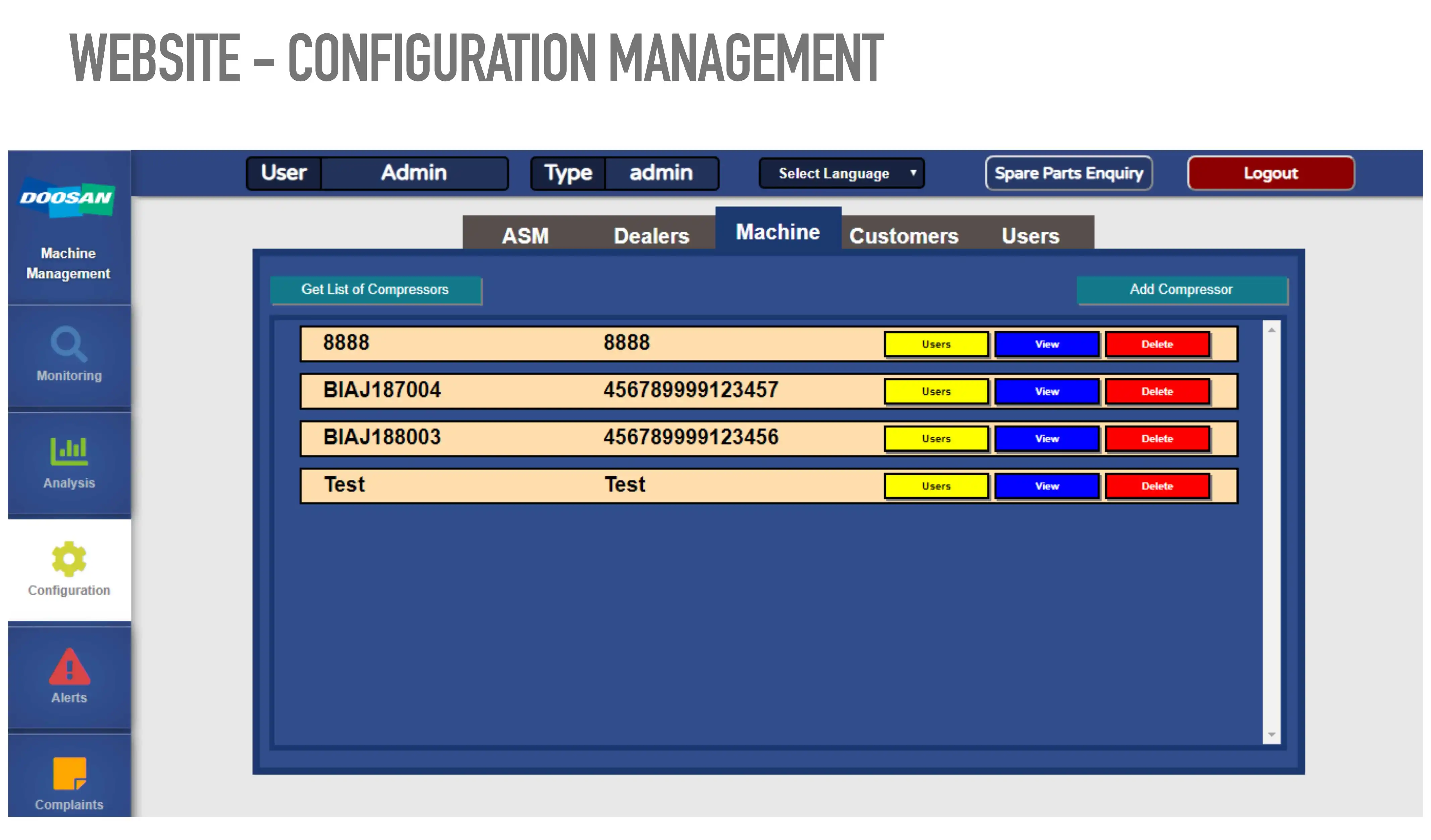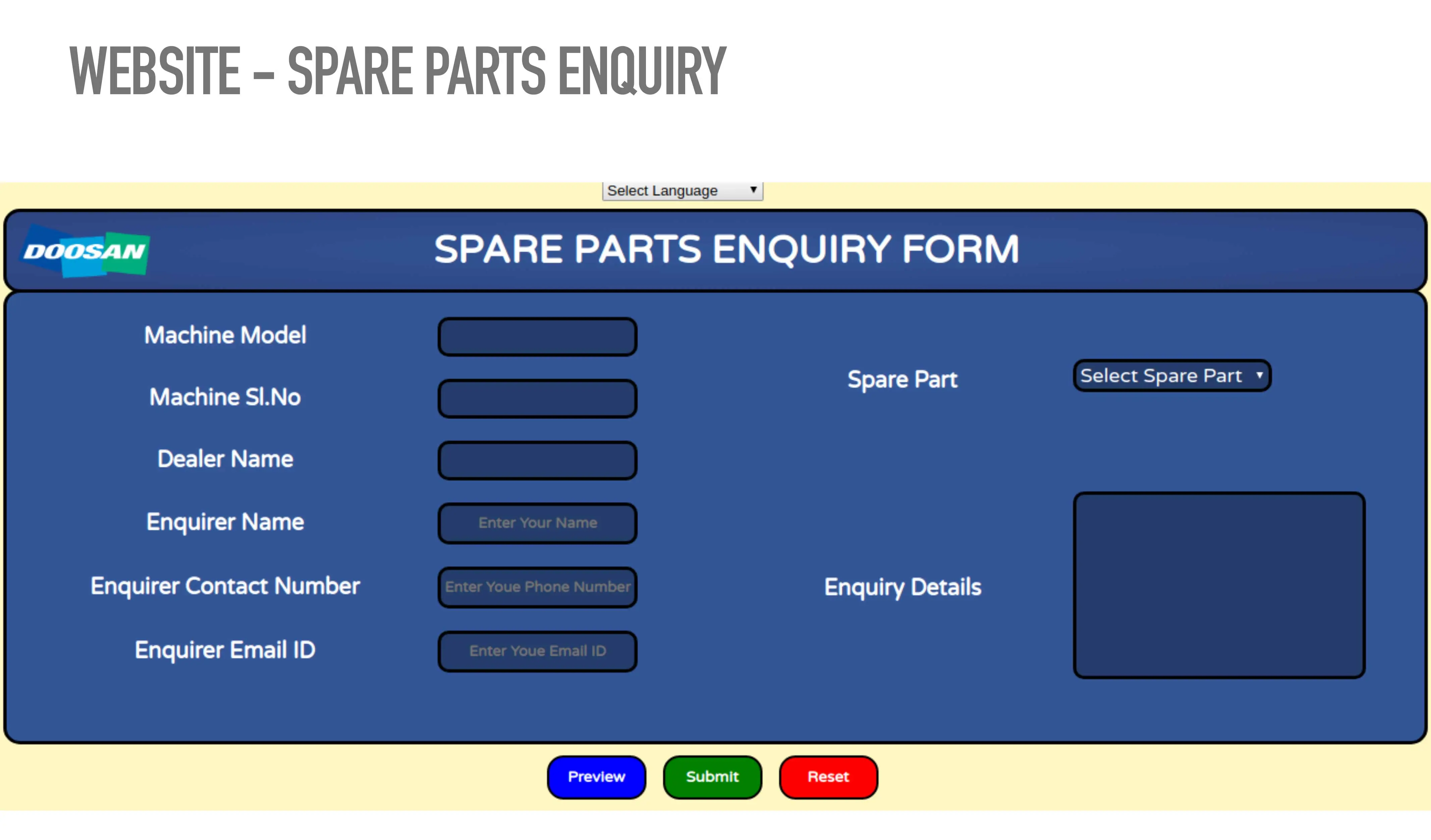 A built-in dealer search function enables customers to locate authorized service partners using a map-based view and access contact information instantly. The spare parts enquiry module allows users to submit machine details and part requests directly through the platform, reducing delays and simplifying communication between customers, dealers, and OEMs.